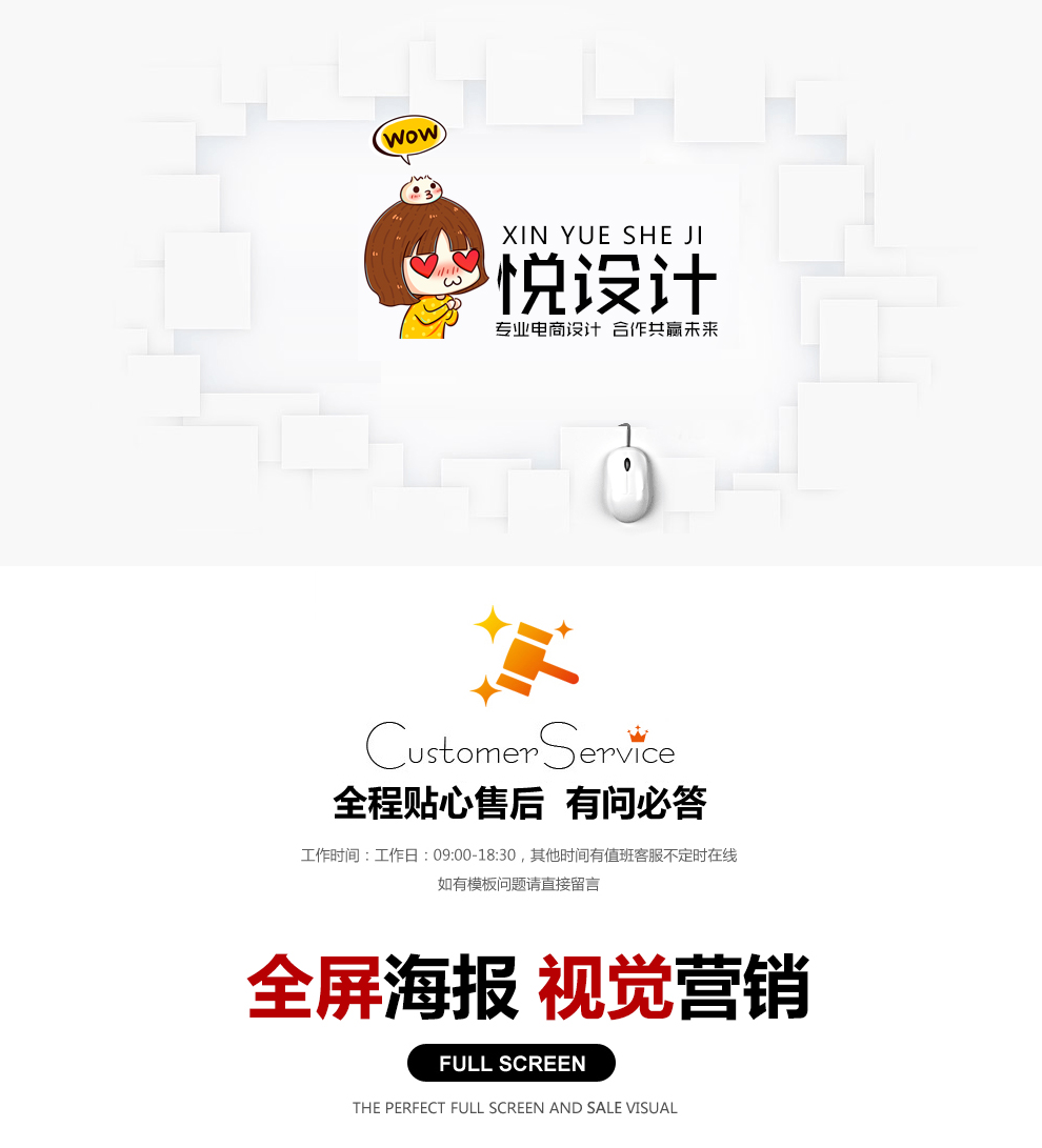 | 海报修改 | 用户需按要求提供所需产品原图,由设计师为用户修改符合规格海报图,并提供JPG、PSD文件给用户。海报图包括全屏大海报、轮播广告、单幅广告等,一次性服务,恕不反复修改,不负责海报排版或风格修改; | |||