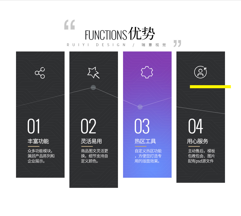 | 使用指导 | 用户购买模板后,负责指导用户如何安装及使用模板,并对用户编辑过程中遇到的操作问题予以解答,不负责手机旺铺其他操作问题; | |||