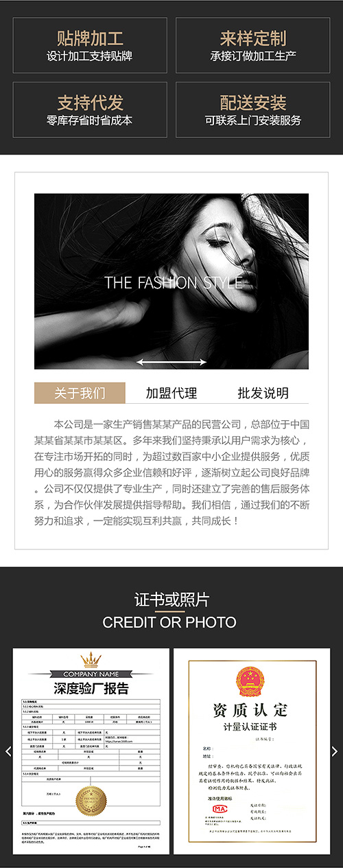 | 产品图修改 | 如版块中含自定义产品图,则设计师须为用户修改自定义产品图。用户须按要求提供所需产品原图,由设计师制作成符合规格的图片,并为用户替换或指导用户进行替换。一次性服务,恕不反复修改; | |||